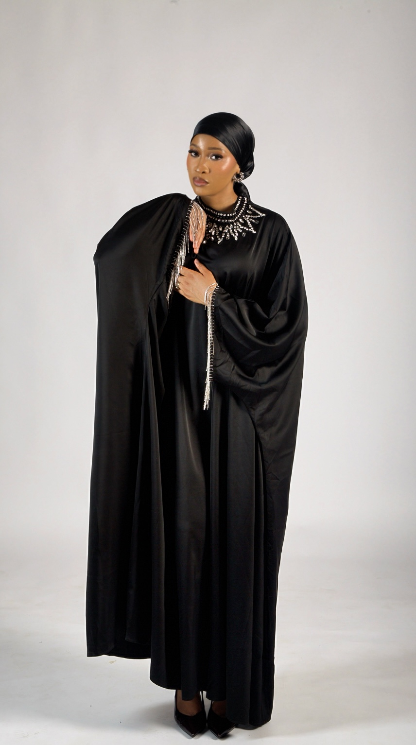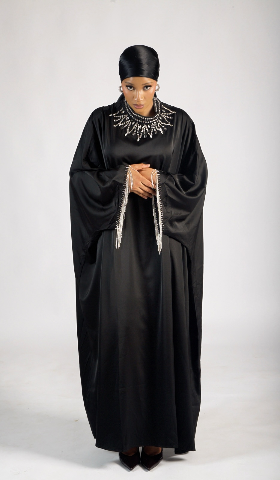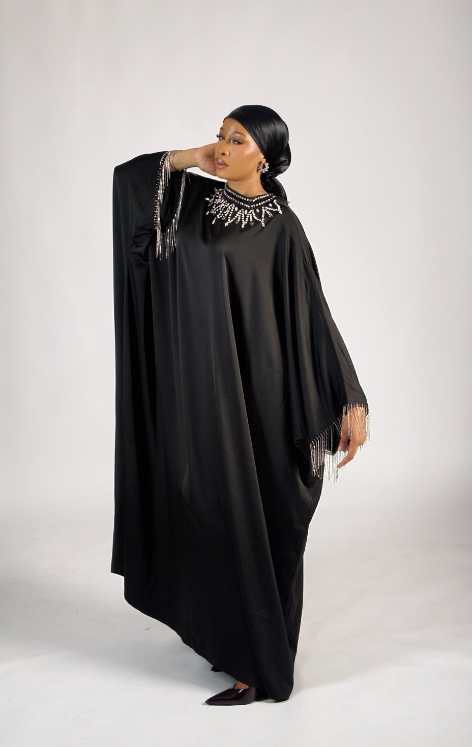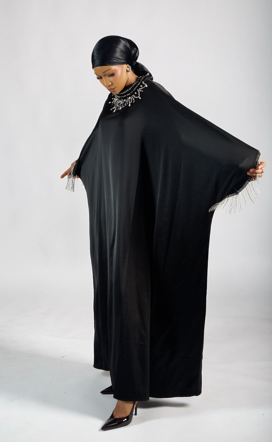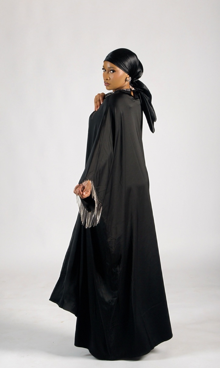 Découvrez l’essence du raffinement avec notre abaya perlée noire, une pièce majestueuse qui allie sobriété, fluidité et finitions d’exception.