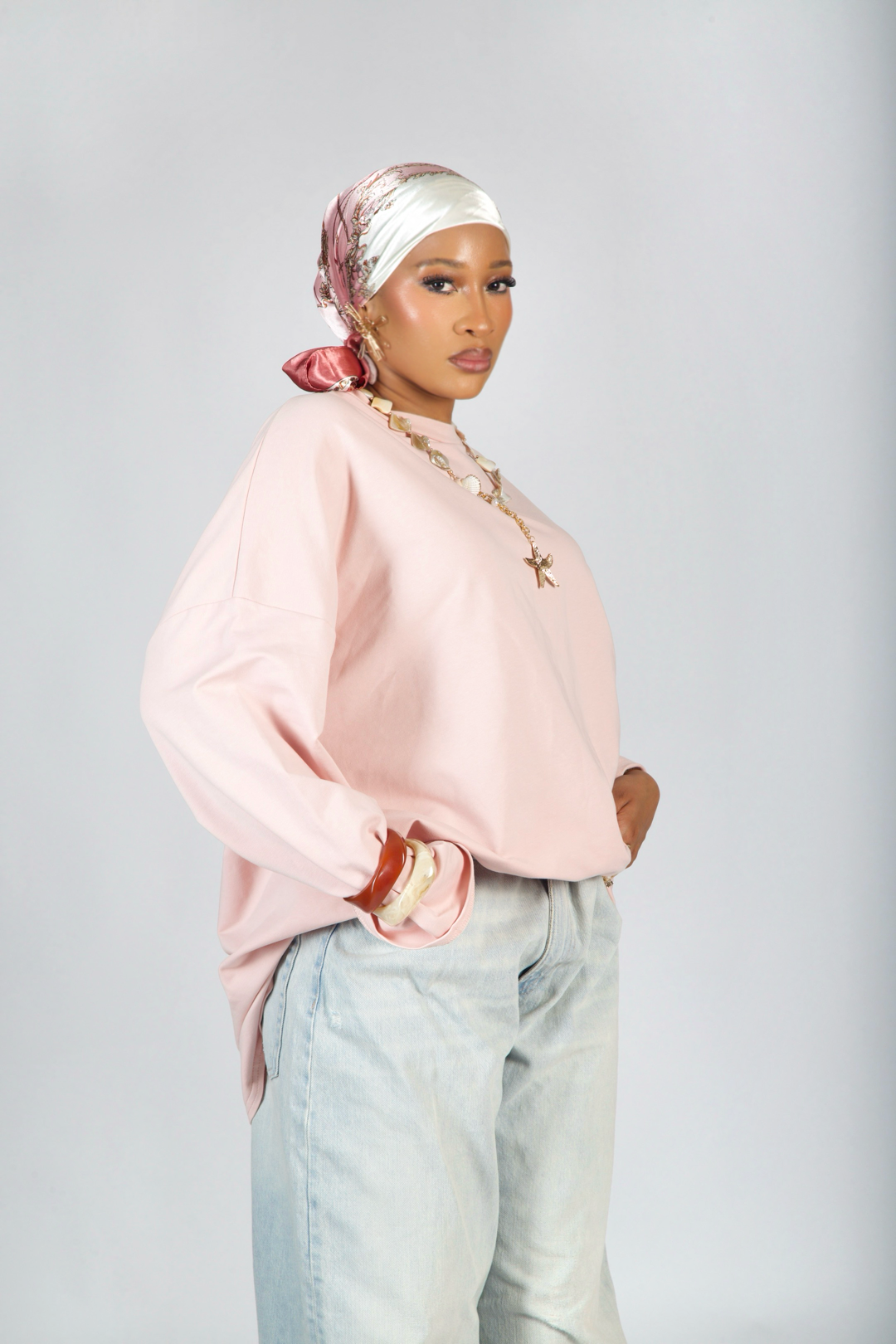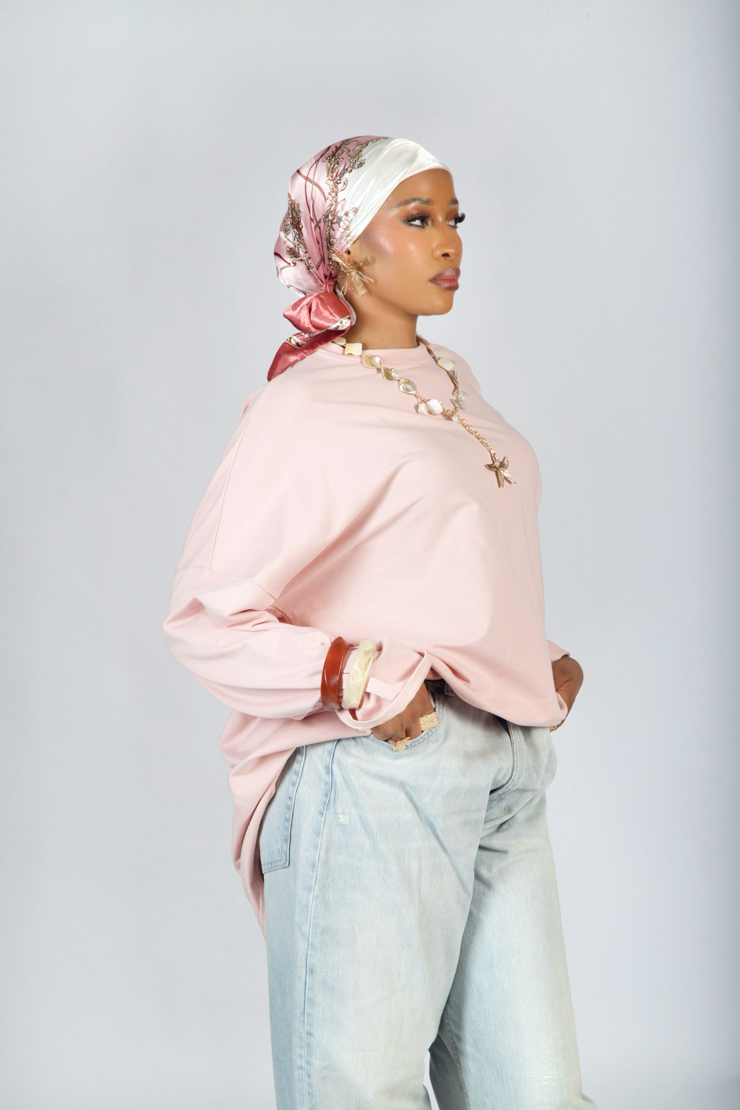 Adoptez un look confortable et tendance avec ce t-shirt oversize rose poudré, confectionné en coton doux et respirantpour un confort optimal toute la journée.
